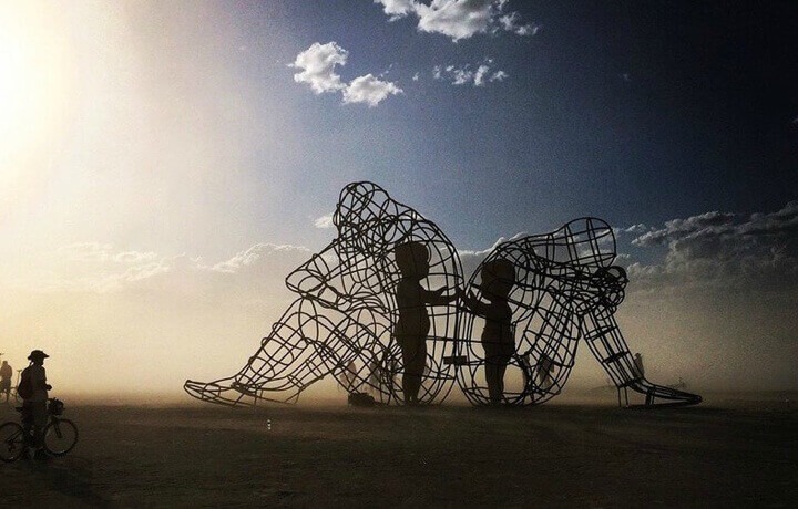 O escultor ucraniano Alexandre Milov apresentou uma obra chamada “Love” no festival Burning Man deste ano, em Nevada, EUA. O artista representou muito bem as relações humanas, colocando duas crianças no interior de corpos adultos. Enquanto os corpos adultos estão de costas um para o outro, as crianças internas se procuram. Jeffrey Young (1990) ressalta que a busca desesperada ainda por necessidades infâncias não supridas, muitas vezes, faz com que os adultos usem estratégias defensivas pouco assertivas que os afastam das suas necessidades emocionais, ou seja, agem na direção contrária a uma troca emocional mais satisfatória, ficando de costas para o outro, como Alexandre Milov exemplificou em sua obra.